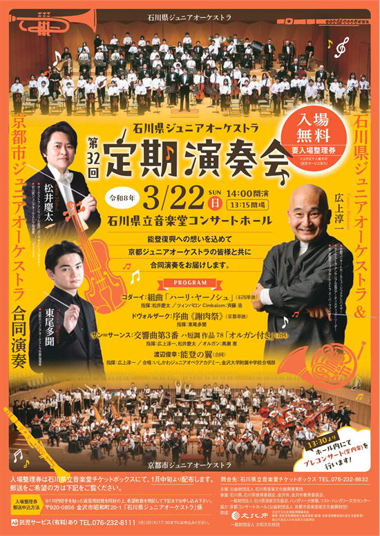 3月22日 石川県ジュニアオーケストラ定期演奏会にゲスト出演します